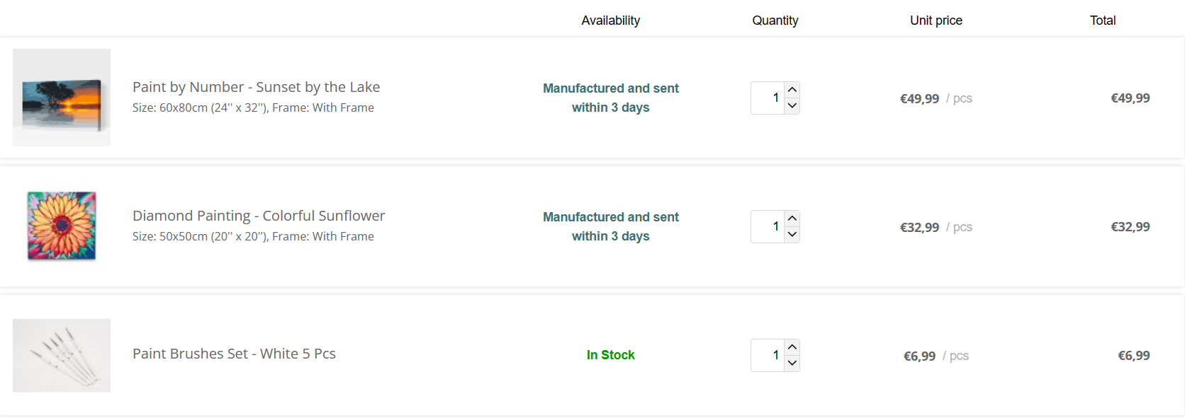 - Een van onze klanten plaatste een bestelling ter waarde van € 89,97 en kocht: 1 x schilderen-op-nummer motief, 1 x diamond painting motief en een set witte penselen.