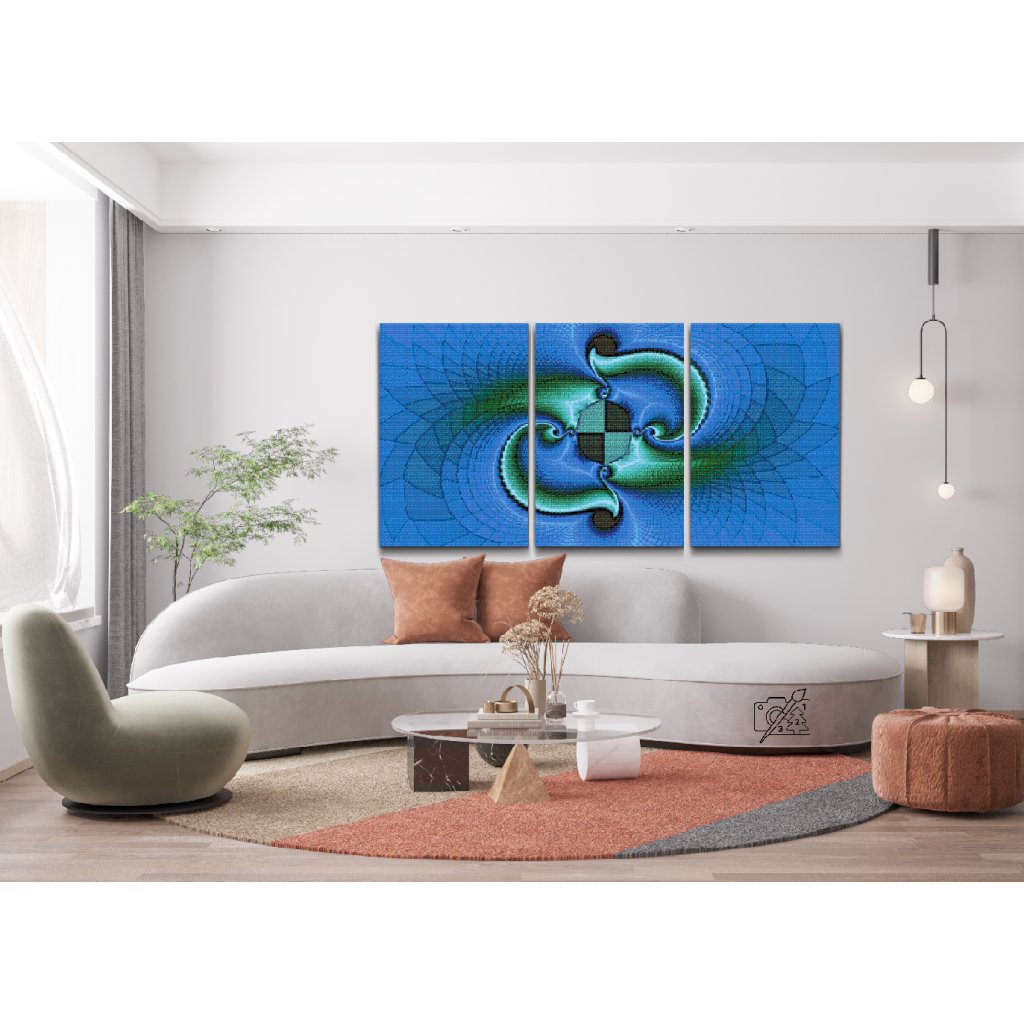 Wanneer het hele canvas bedekt is met diamanten, gaat u verder met het volgende stuk. Elk stuk kan direct na voltooiing worden opgehangen, als u de ingelijste canvas sets heeft besteld (sterk aanbevolen).