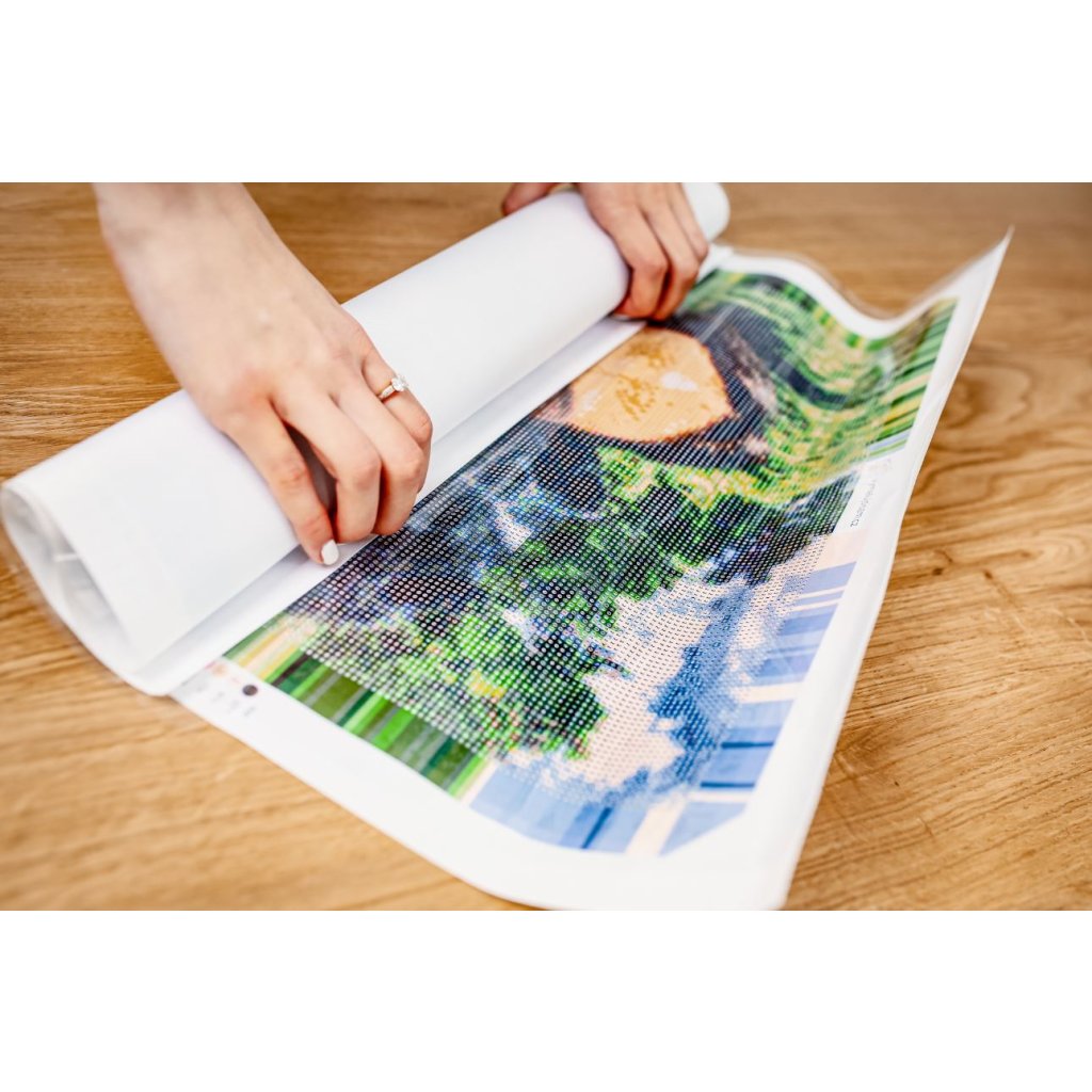 Lijmgebaseerd canvas - Je canvas is al voorzien van een laag lijm, met een beschermende film eroverheen die je geleidelijk kunt verwijderen terwijl je de diamanten aanbrengt. Het hele proces is vrij schoon en gemakkelijk. Overweeg om het houten frame aan te schaffen, anders bevat je kit alles wat je nodig hebt.