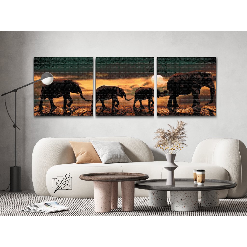 Diamond painting - Olifantenmars door de savanne (set van 3)