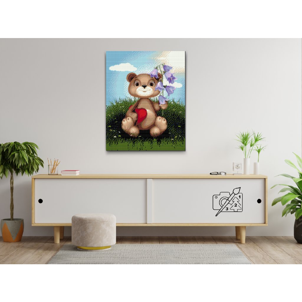 Diamond painting - Teddybeer met lelietje-van-dalen
