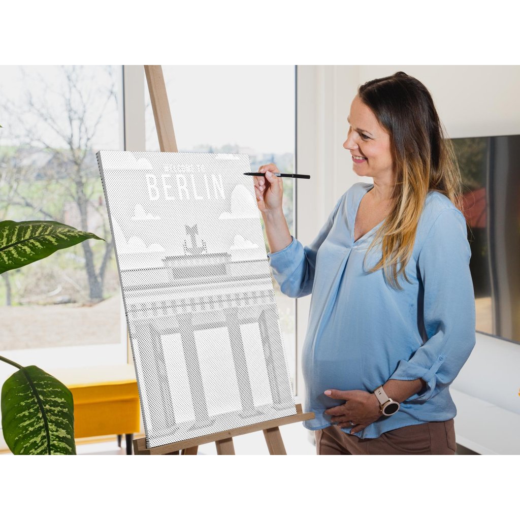 Maak je eigen nieuwe designschilderij met stippen! Kies een viltstift in je favoriete kleur en breng in je eigen tempo stippen aan op het voorbedrukte canvas. Als je kiest voor een versie met lijst, kun je het schilderij direct aan de muur hangen. Het resultaat is gegarandeerd een indrukwekkend kunstwerk, ook al heb je geen enkele schilderervaring. Stip voor stip creëer je een prachtig kunstwerk.