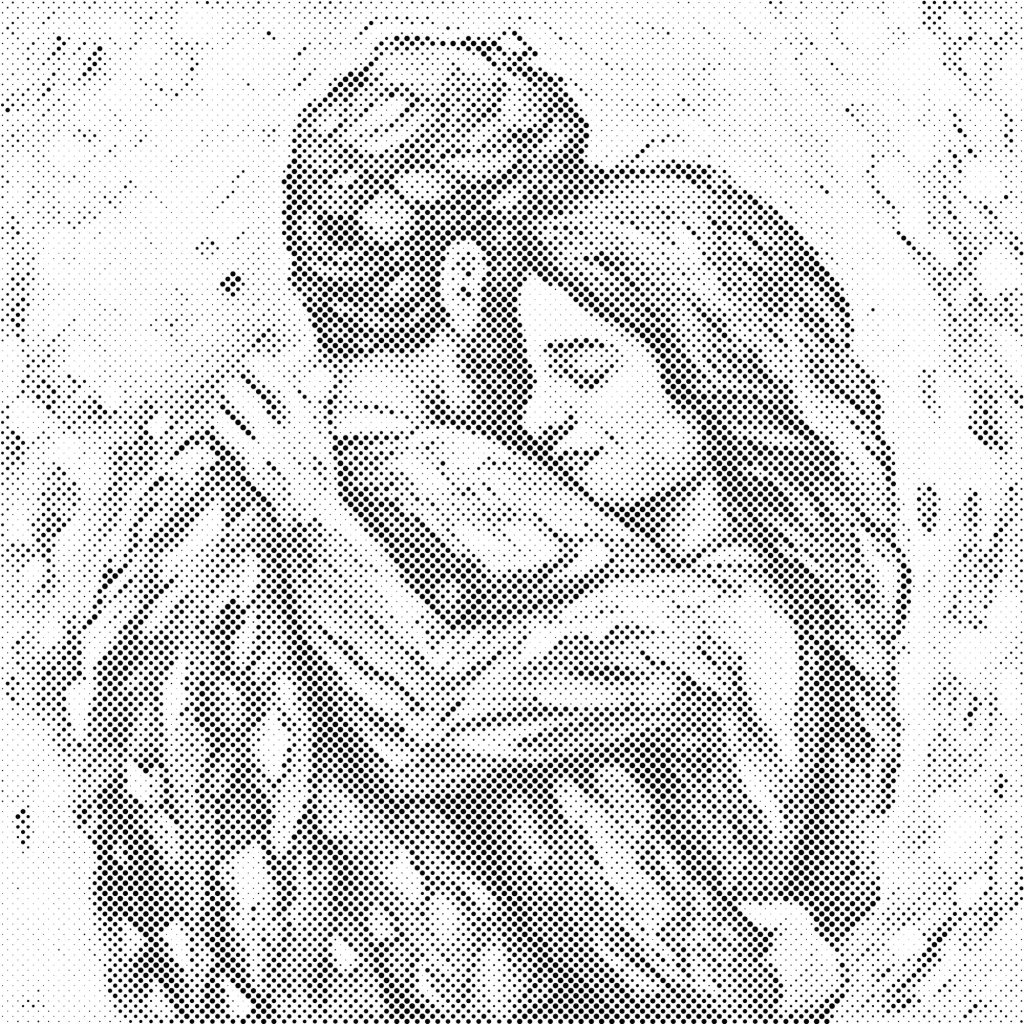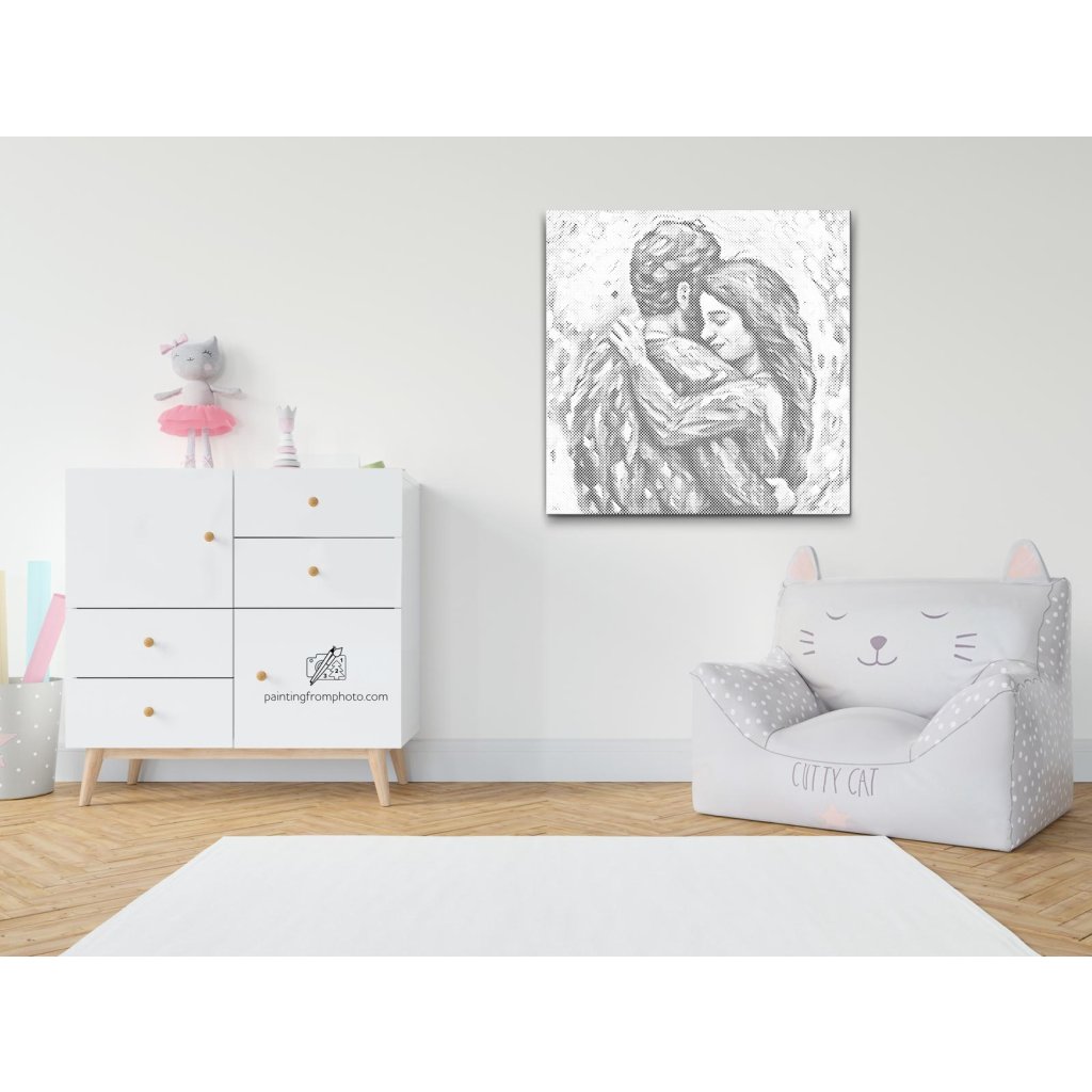 Dot painting - Geliefden omhelzen elkaar