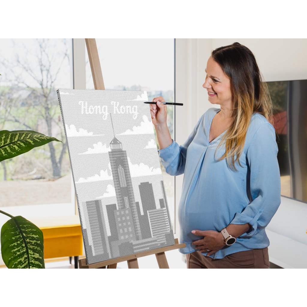Maak je eigen nieuwe designschilderij met stippen! Kies een viltstift in je favoriete kleur en breng in je eigen tempo stippen aan op het voorbedrukte canvas. Als je kiest voor een versie met lijst, kun je het schilderij direct aan de muur hangen. Het resultaat is gegarandeerd een indrukwekkend kunstwerk, ook al heb je geen enkele schilderervaring. Stip voor stip creëer je een prachtig kunstwerk.