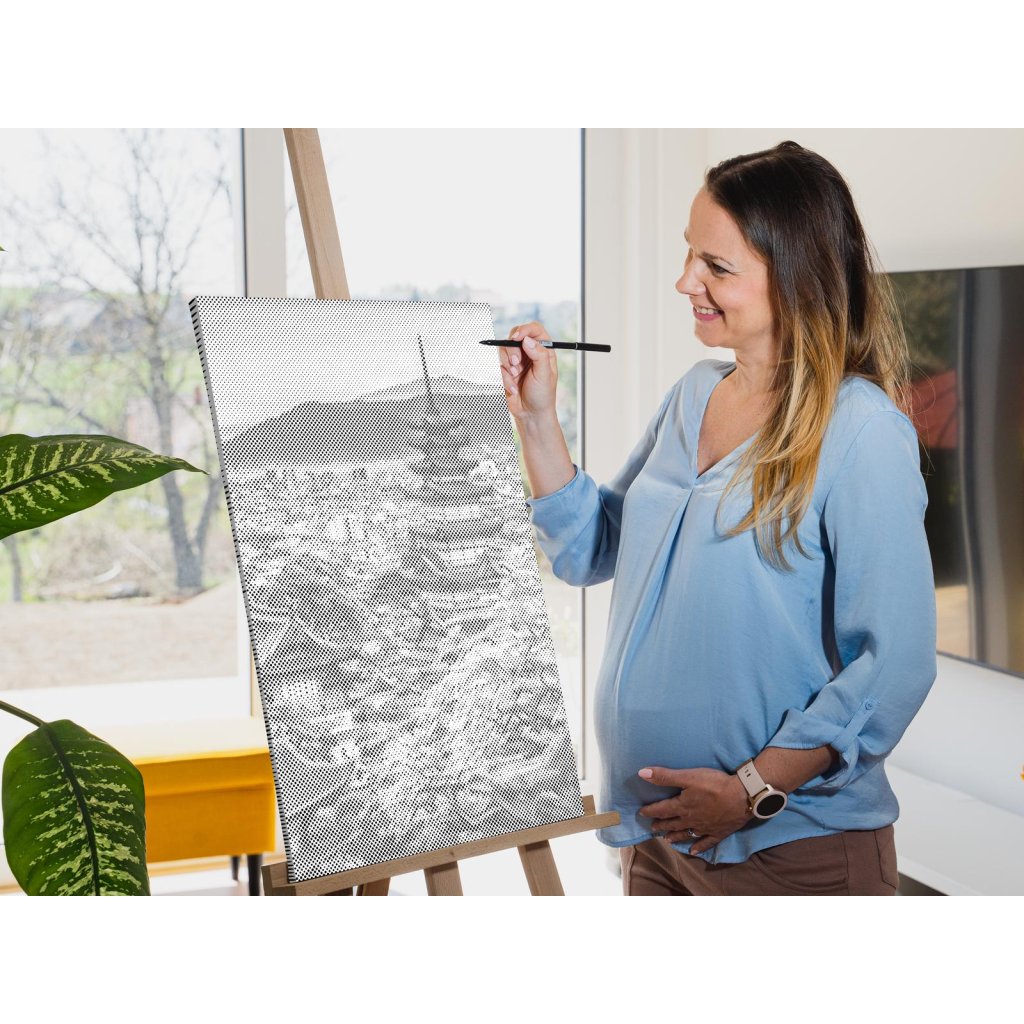 Maak je eigen nieuwe designschilderij met stippen! Kies een viltstift in je favoriete kleur en breng in je eigen tempo stippen aan op het voorbedrukte canvas. Als je kiest voor een versie met lijst, kun je het schilderij direct aan de muur hangen. Het resultaat is gegarandeerd een indrukwekkend kunstwerk, ook al heb je geen enkele schilderervaring. Stip voor stip creëer je een prachtig kunstwerk.