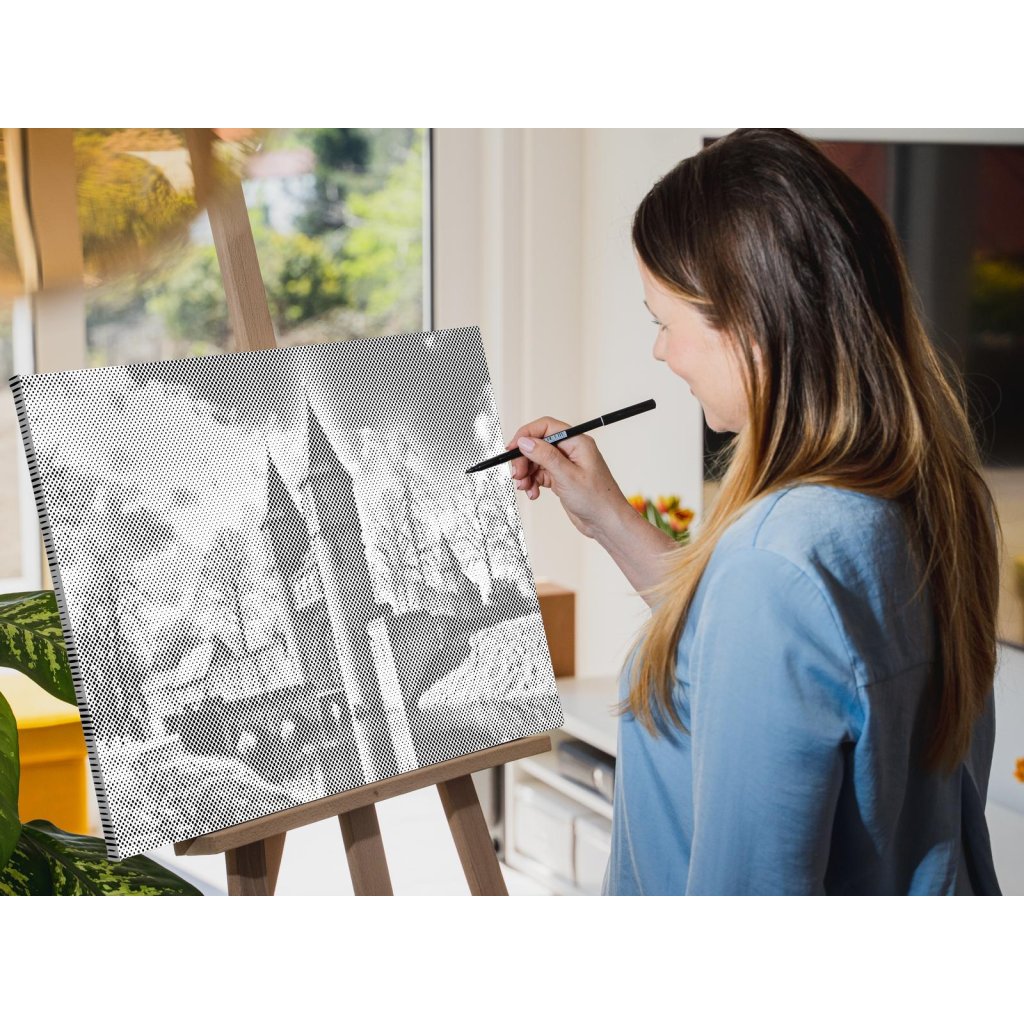 Maak je eigen nieuwe designschilderij met stippen! Kies een viltstift in je favoriete kleur en breng in je eigen tempo stippen aan op het voorbedrukte canvas. Als je kiest voor een versie met lijst, kun je het schilderij direct aan de muur hangen. Het resultaat is gegarandeerd een indrukwekkend kunstwerk, ook al heb je geen enkele schilderervaring. Stip voor stip creëer je een prachtig kunstwerk.