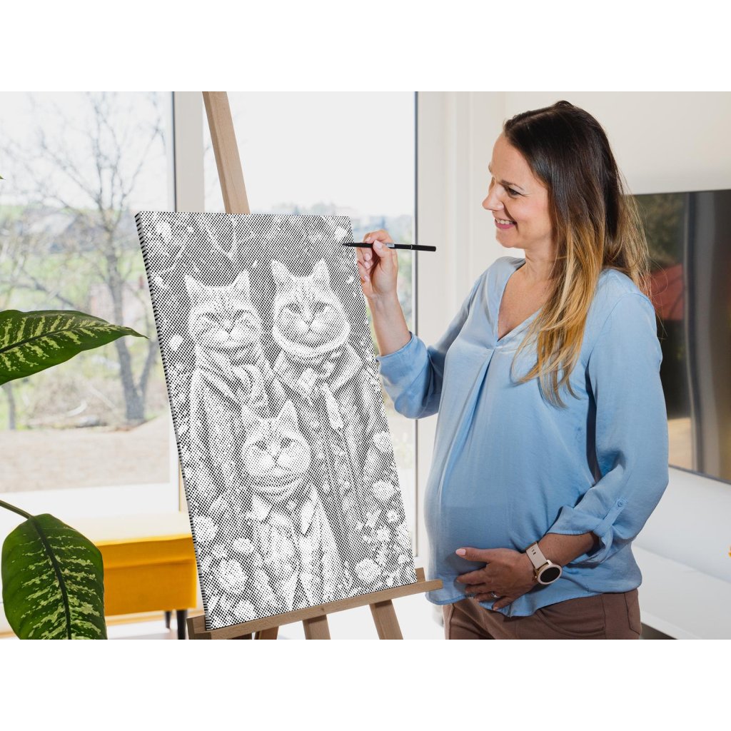 Maak je eigen nieuwe designschilderij met stippen! Kies een viltstift in je favoriete kleur en breng in je eigen tempo stippen aan op het voorbedrukte canvas. Als je kiest voor een versie met lijst, kun je het schilderij direct aan de muur hangen. Het resultaat is gegarandeerd een indrukwekkend kunstwerk, ook al heb je geen enkele schilderervaring. Stip voor stip creëer je een prachtig kunstwerk.