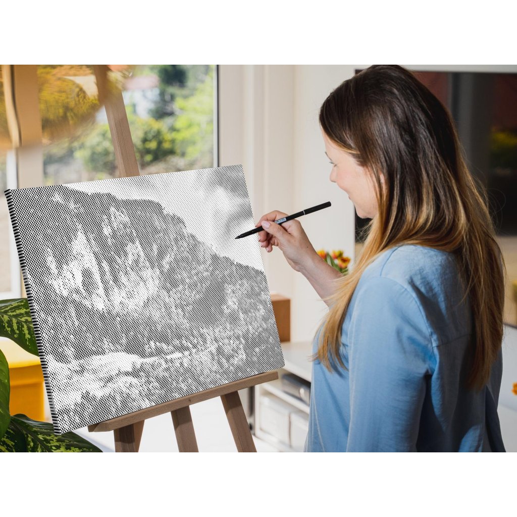 Maak je eigen nieuwe designschilderij met stippen! Kies een viltstift in je favoriete kleur en breng in je eigen tempo stippen aan op het voorbedrukte canvas. Als je kiest voor een versie met lijst, kun je het schilderij direct aan de muur hangen. Het resultaat is gegarandeerd een indrukwekkend kunstwerk, ook al heb je geen enkele schilderervaring. Stip voor stip creëer je een prachtig kunstwerk.