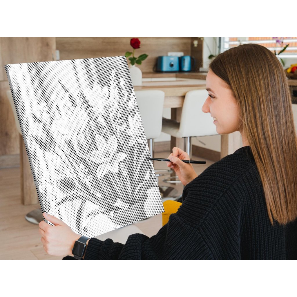 Maak je eigen nieuwe designschilderij met stippen! Kies een viltstift in je favoriete kleur en breng in je eigen tempo stippen aan op het voorbedrukte canvas. Als je kiest voor een versie met lijst, kun je het schilderij direct aan de muur hangen. Het resultaat is gegarandeerd een indrukwekkend kunstwerk, ook al heb je geen enkele schilderervaring. Stip voor stip creëer je een prachtig kunstwerk.