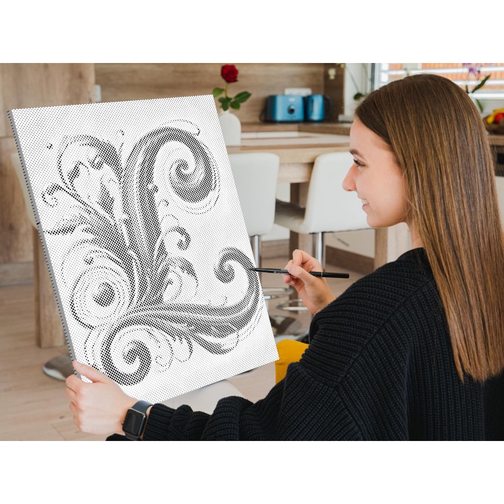 Maak je eigen nieuwe designschilderij met stippen! Kies een viltstift in je favoriete kleur en breng in je eigen tempo stippen aan op het voorbedrukte canvas. Als je kiest voor een versie met lijst, kun je het schilderij direct aan de muur hangen. Het resultaat is gegarandeerd een indrukwekkend kunstwerk, ook al heb je geen enkele schilderervaring. Stip voor stip creëer je een prachtig kunstwerk.