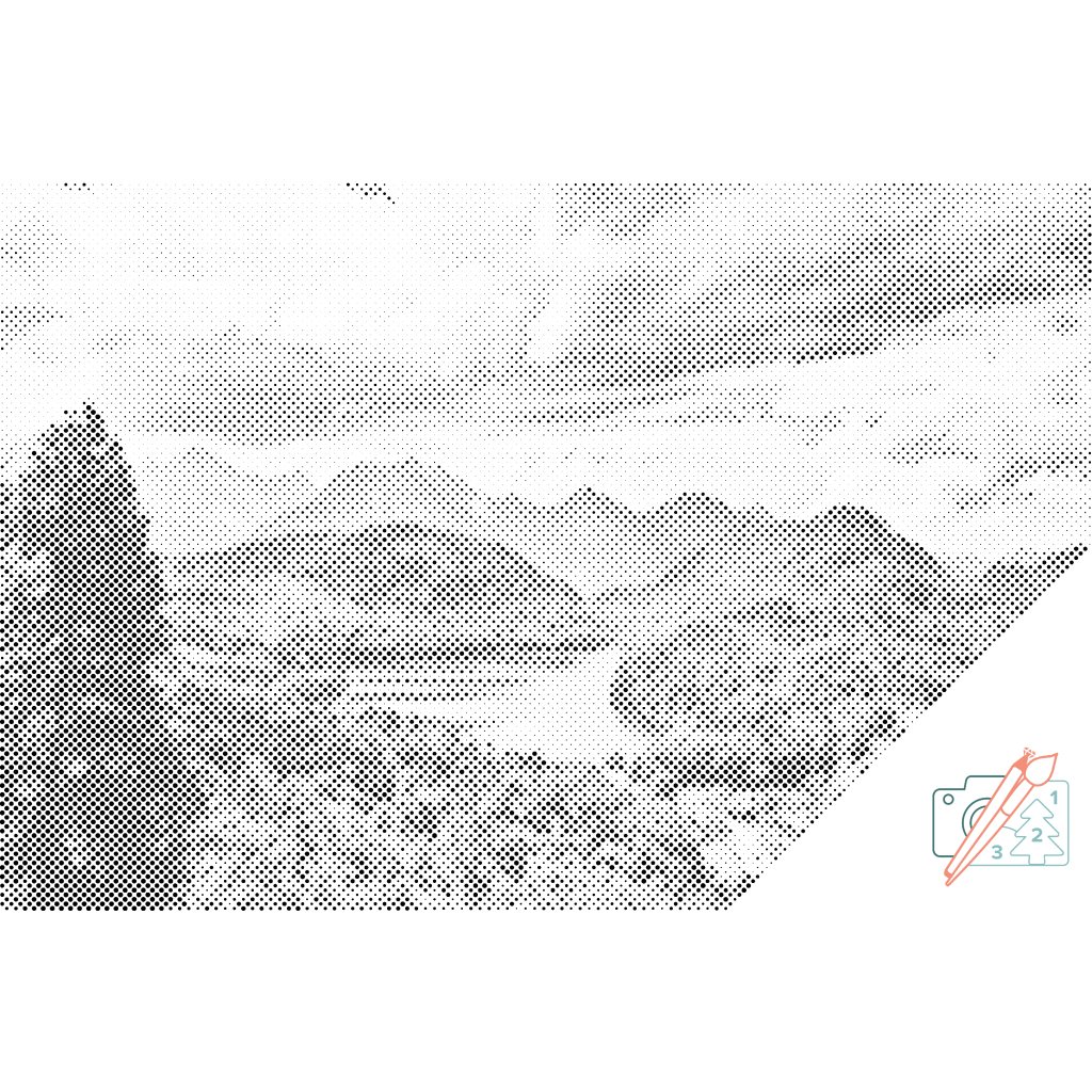 Dot painting - Meer in de Alpen