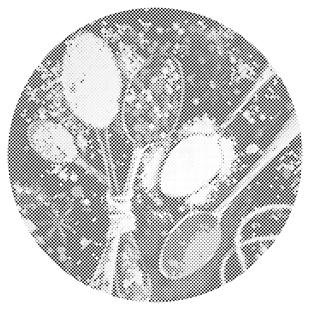 Canvas, voorbedrukt met cirkels van verschillende grootte.