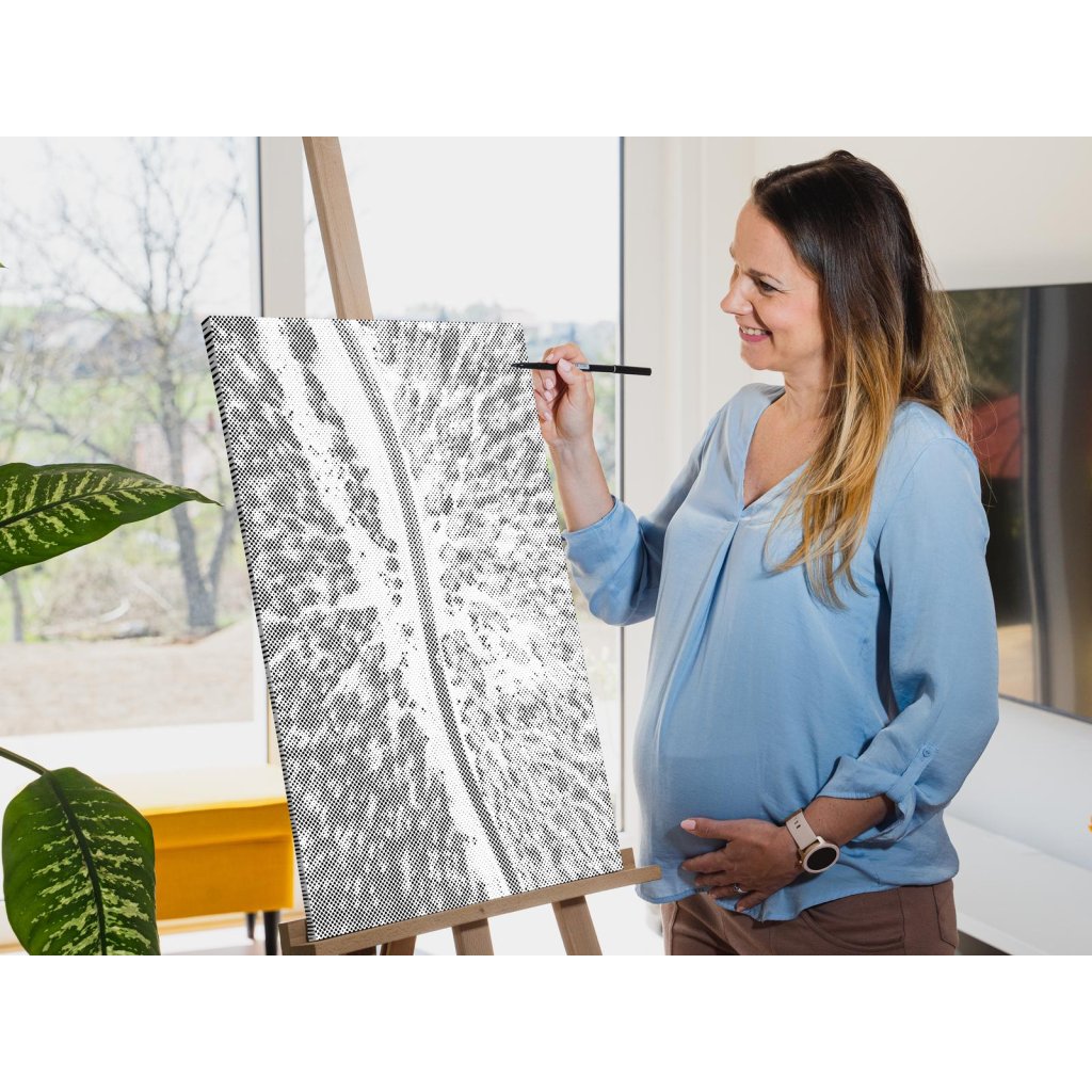 Maak je eigen nieuwe designschilderij met stippen! Kies een viltstift in je favoriete kleur en breng in je eigen tempo stippen aan op het voorbedrukte canvas. Als je kiest voor een versie met lijst, kun je het schilderij direct aan de muur hangen. Het resultaat is gegarandeerd een indrukwekkend kunstwerk, ook al heb je geen enkele schilderervaring. Stip voor stip creëer je een prachtig kunstwerk.