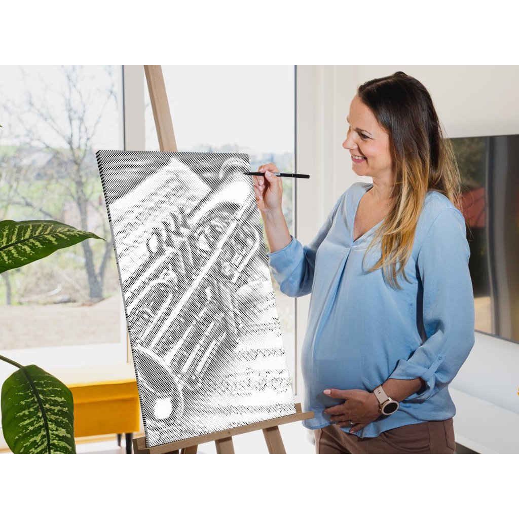 Maak je eigen nieuwe designschilderij met stippen! Kies een viltstift in je favoriete kleur en breng in je eigen tempo stippen aan op het voorbedrukte canvas. Als je kiest voor een versie met lijst, kun je het schilderij direct aan de muur hangen. Het resultaat is gegarandeerd een indrukwekkend kunstwerk, ook al heb je geen enkele schilderervaring. Stip voor stip creëer je een prachtig kunstwerk.