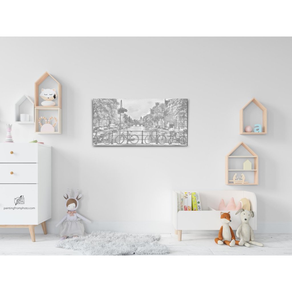 Dot painting - Uitzicht vanaf de brug in Amsterdam - Nederland