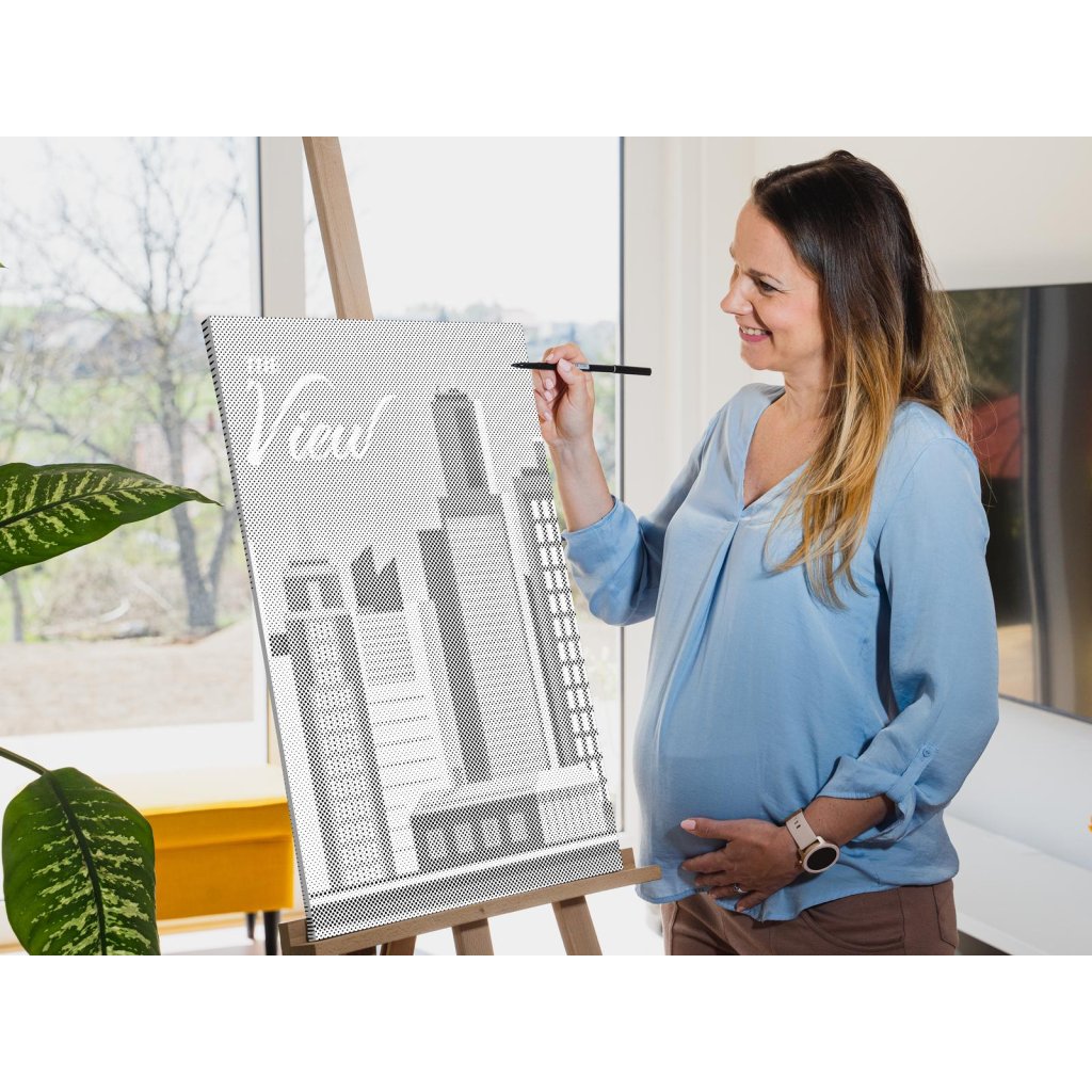 Maak je eigen nieuwe designschilderij met stippen! Kies een viltstift in je favoriete kleur en breng in je eigen tempo stippen aan op het voorbedrukte canvas. Als je kiest voor een versie met lijst, kun je het schilderij direct aan de muur hangen. Het resultaat is gegarandeerd een indrukwekkend kunstwerk, ook al heb je geen enkele schilderervaring. Stip voor stip creëer je een prachtig kunstwerk.