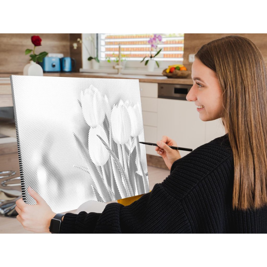 Maak je eigen nieuwe designschilderij met stippen! Kies een viltstift in je favoriete kleur en breng in je eigen tempo stippen aan op het voorbedrukte canvas. Als je kiest voor een versie met lijst, kun je het schilderij direct aan de muur hangen. Het resultaat is gegarandeerd een indrukwekkend kunstwerk, ook al heb je geen enkele schilderervaring. Stip voor stip creëer je een prachtig kunstwerk.