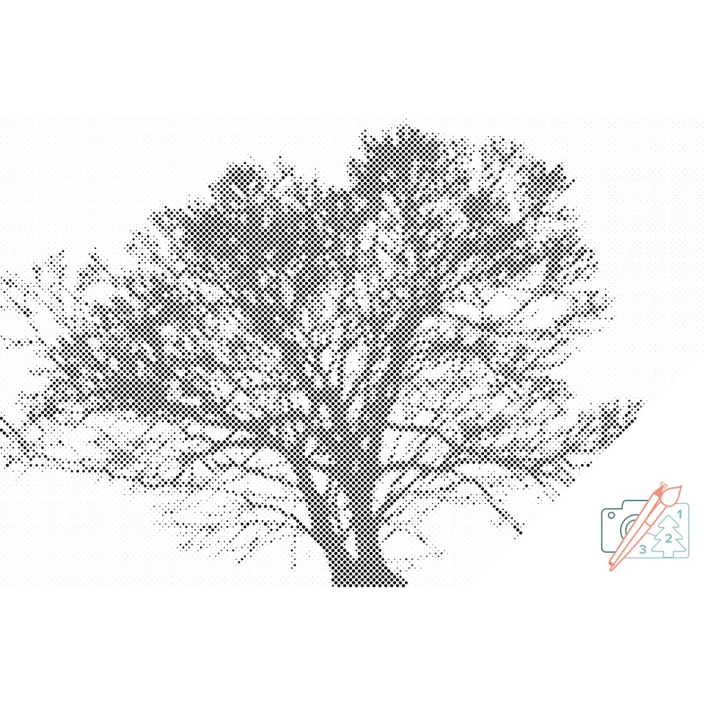 Dot painting - Zwart-witte boom