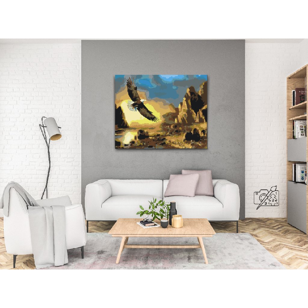Schilderen op nummer - Adelaar cirkelt boven de bergen