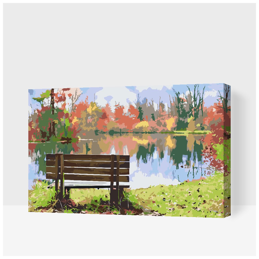 Schilderen op nummer - Bank bij de vijver