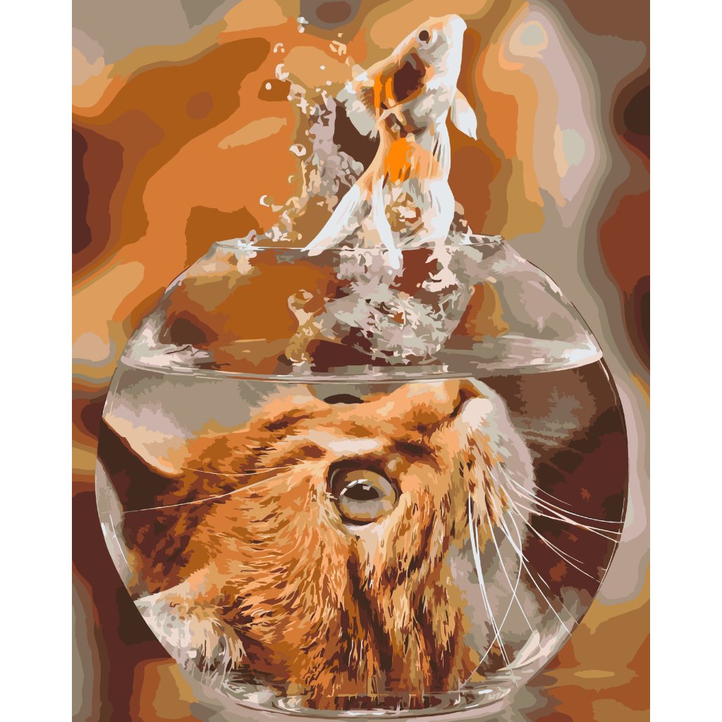 Schilderen op nummer - Katten Uitzicht op een goudvis