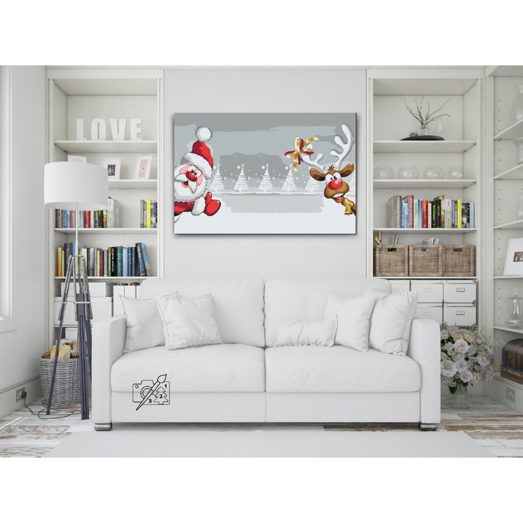 Schilderen op nummer - Kerstman en rendier Rudolph