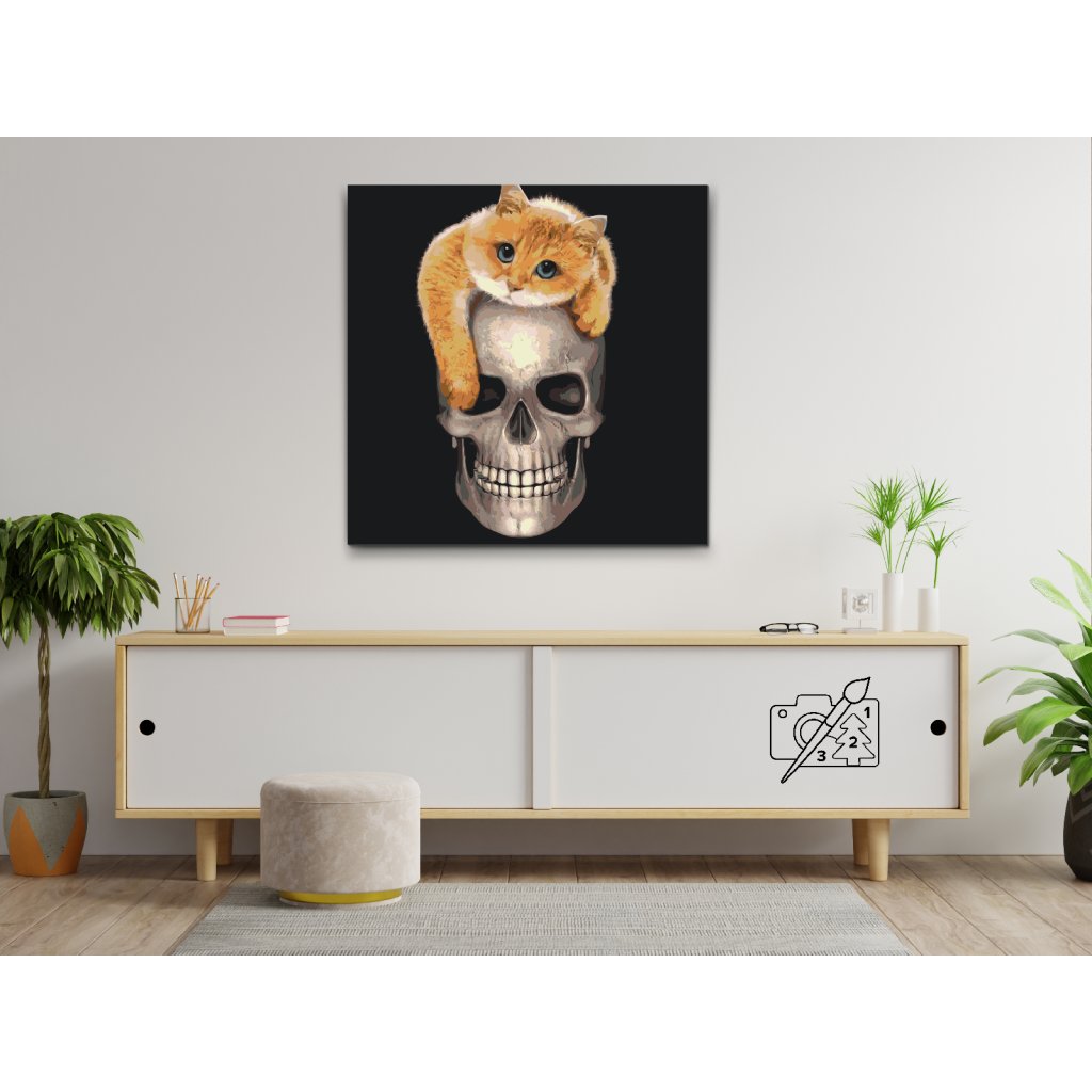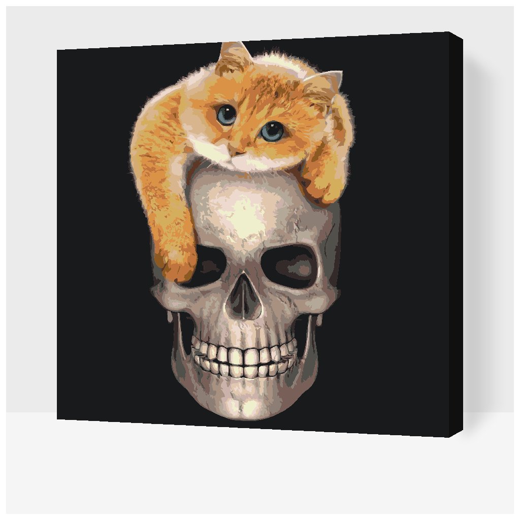 Schilderen op nummer - Kitty op een schedel