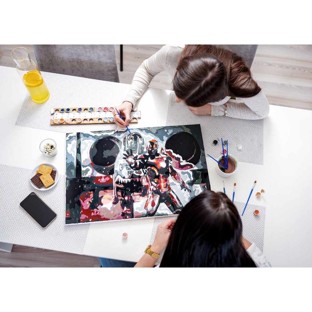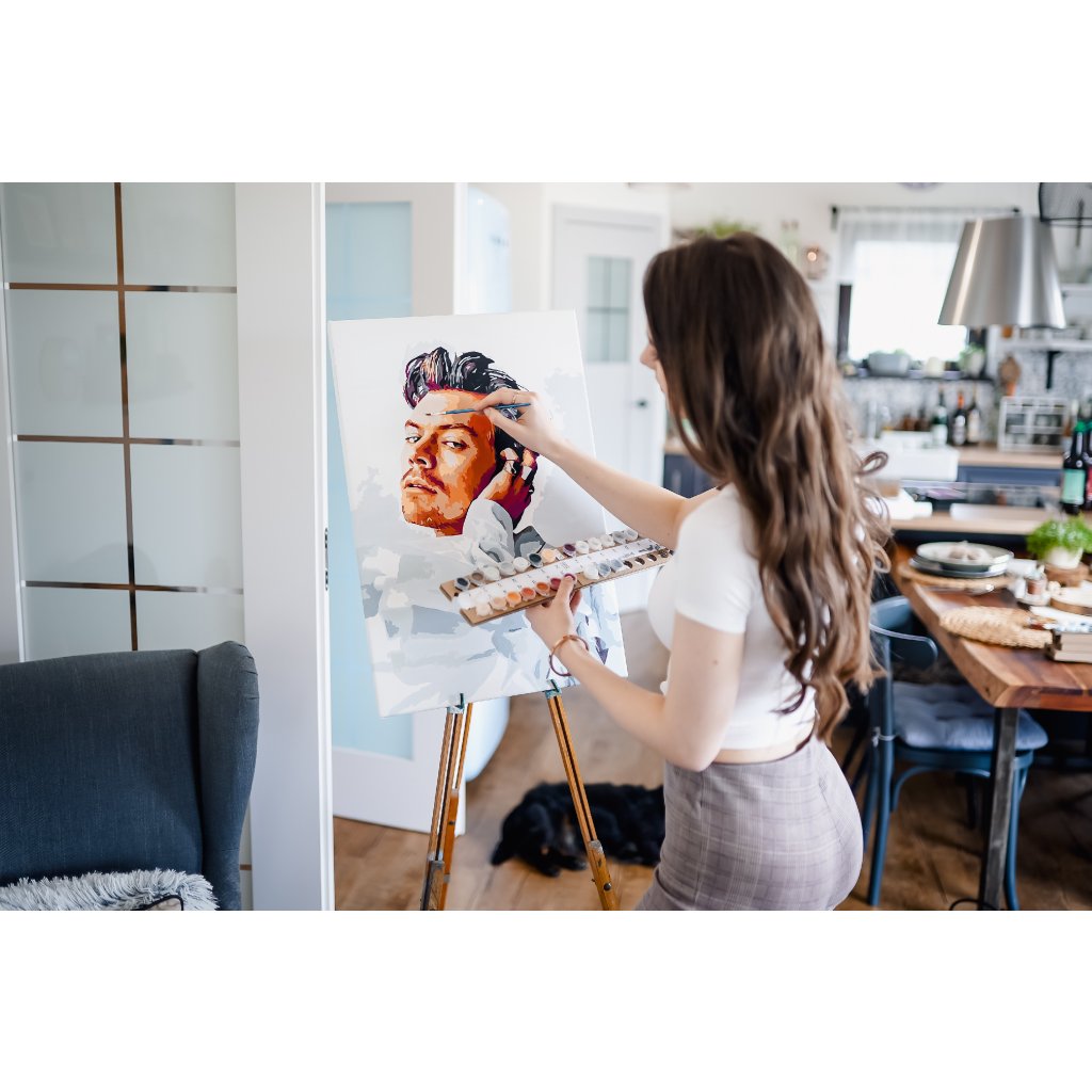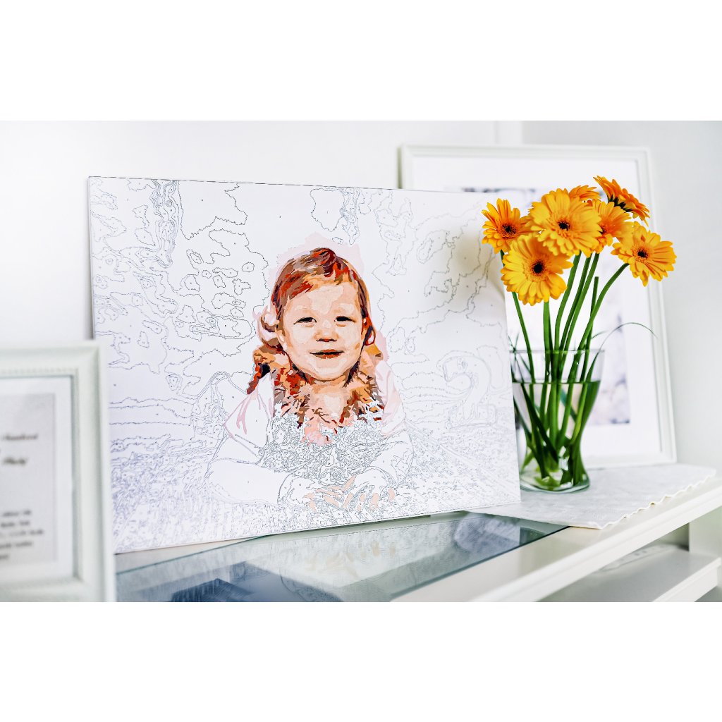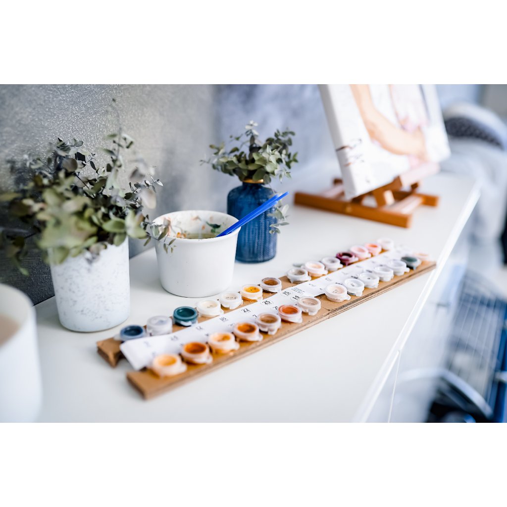 Het proces is eenvoudig: nadat je een foto hebt geüpload, maken wij je schilderpakket klaar, met alles wat je nodig hebt voor je meesterwerk. Er zit een sjabloon op canvas, hoogwaardige acrylverf en penselen bij. Elke verfkleur is afzonderlijk genummerd, zodat u gemakkelijk uw weg kunt vinden op het canvas. We raden u ook aan om uw canvas op een frame te bevestigen, omdat dit het schilderen gemakkelijker en praktischer maakt.