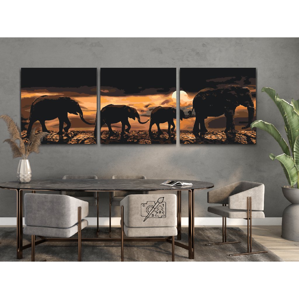 Schilderen op nummer - Olifantenmars door de savanne (set van 3)