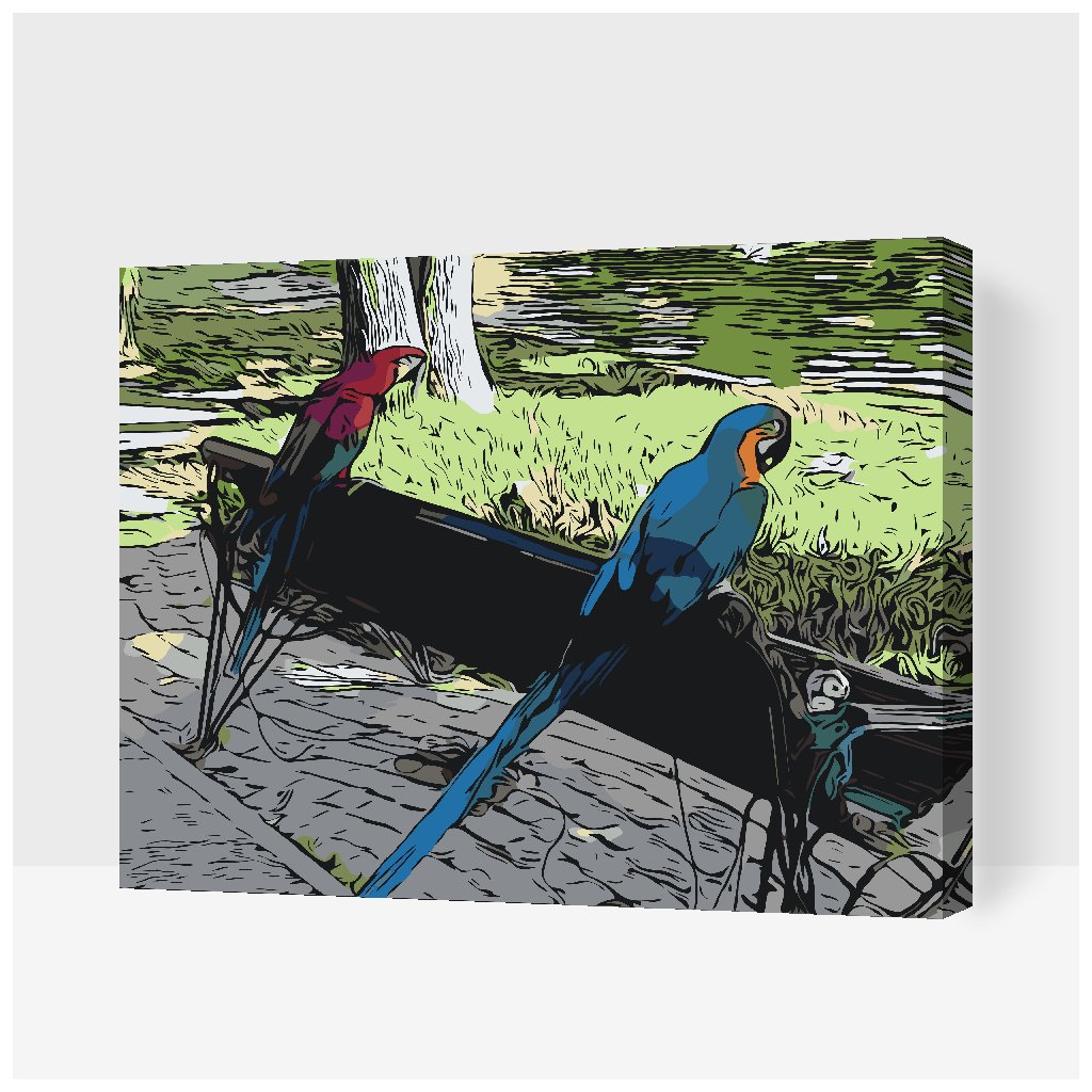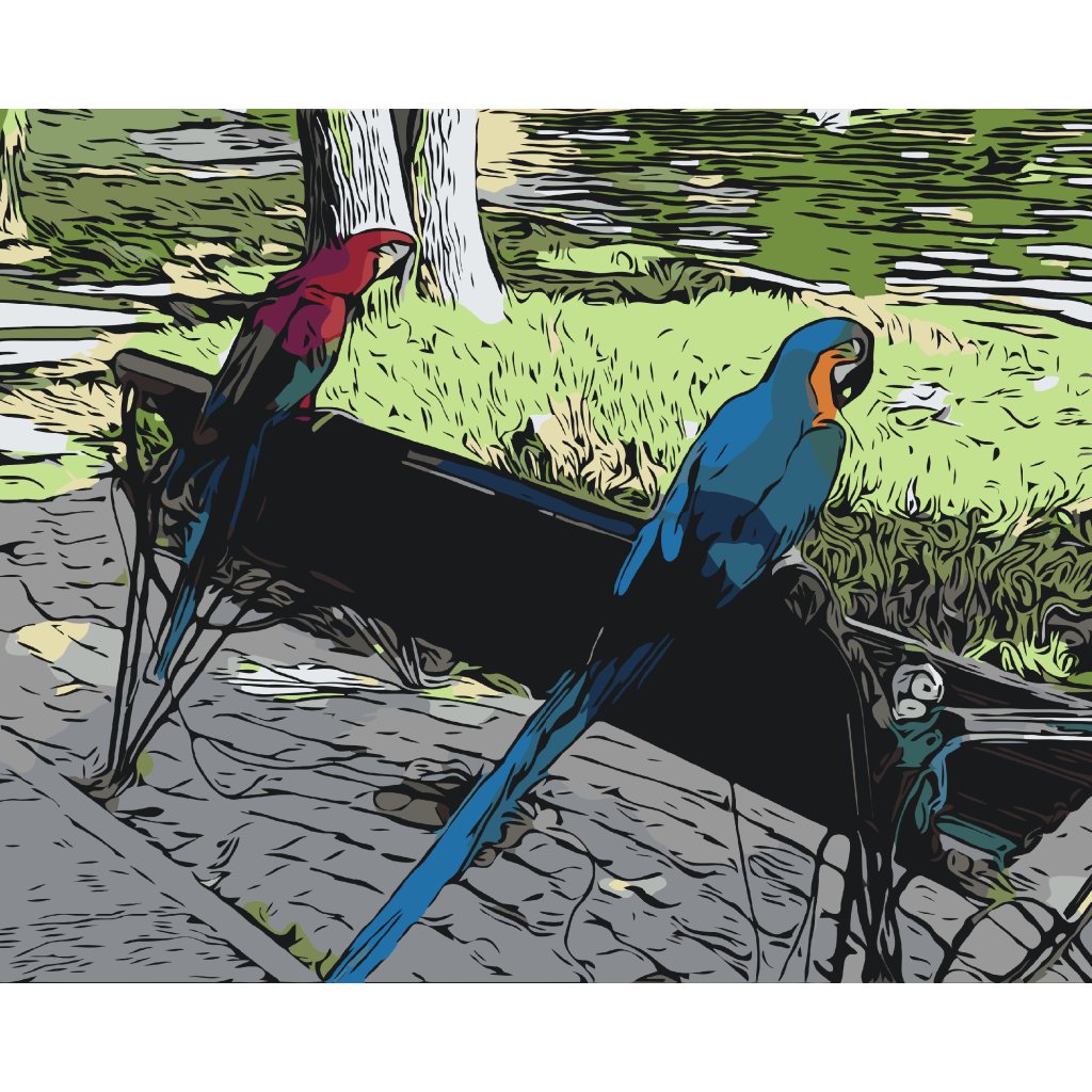 Schilderen op nummer - Papegaaien in het park