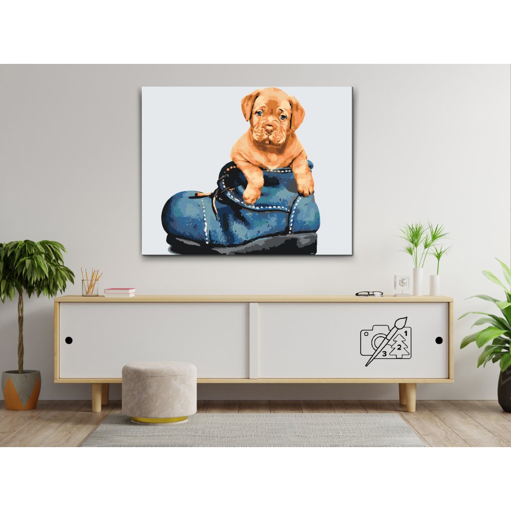 Schilderen op nummer - Puppy in een schoen