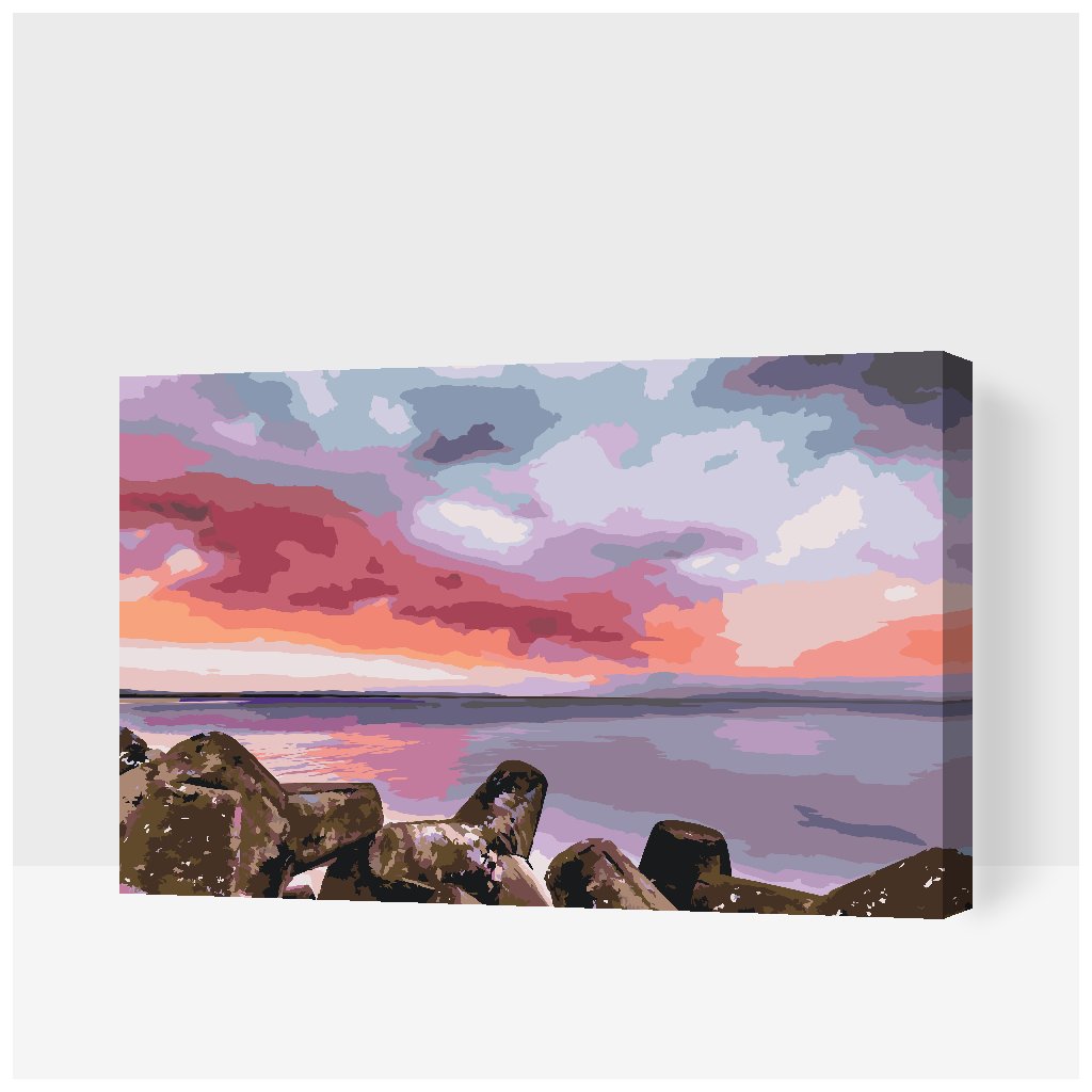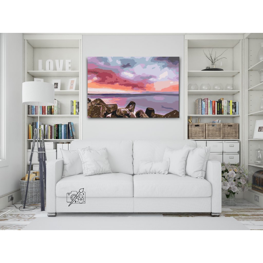 Schilderen op nummer - Rode zonsondergang boven de zee
