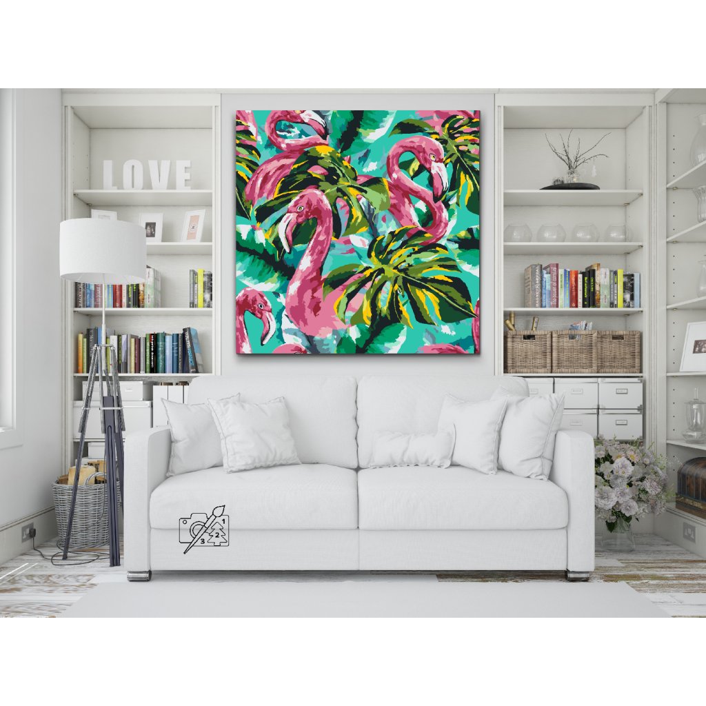 Schilderen op nummer - Roze flamingo's