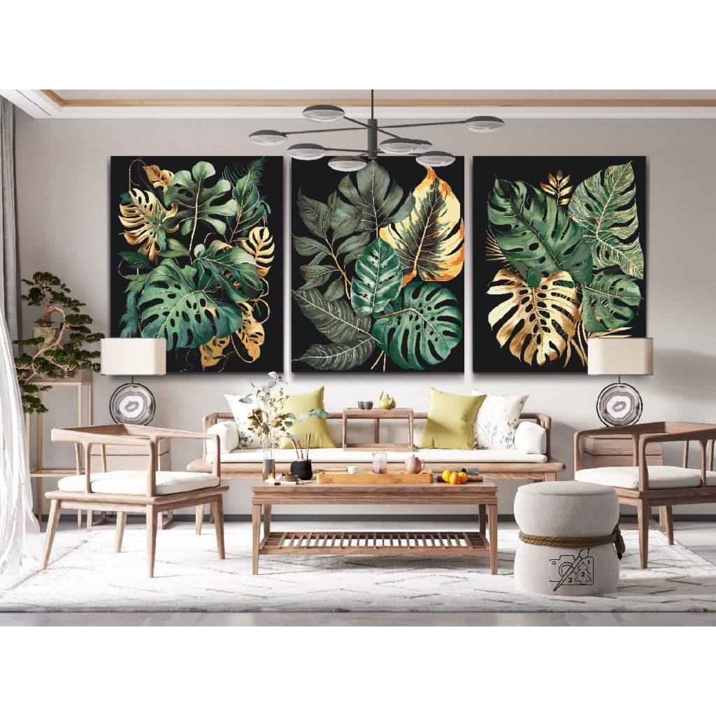 Schilderen op nummer - Tropische klimplant Monstera (set van 3)