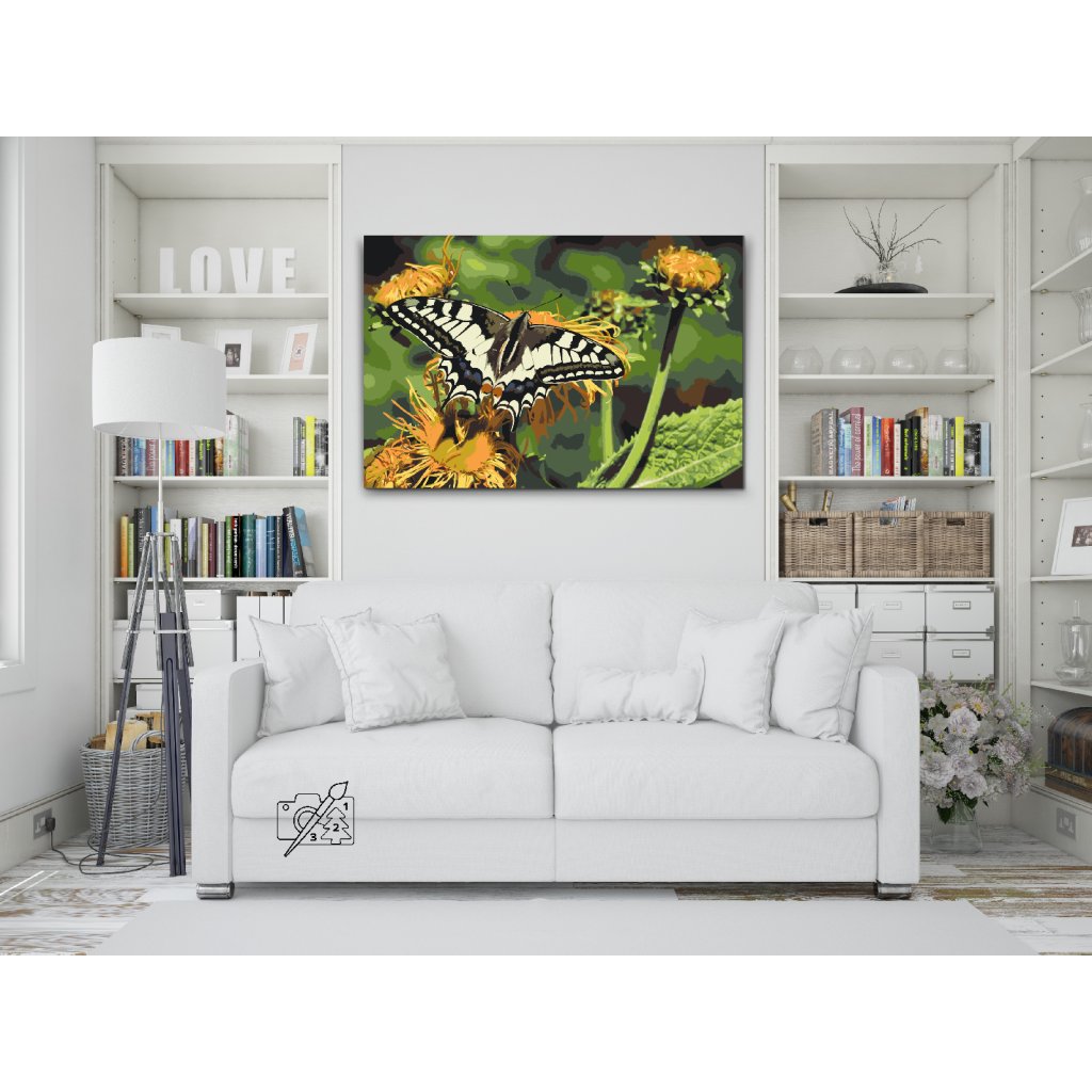 Schilderen op nummer - Vlinder op een paardenbloem