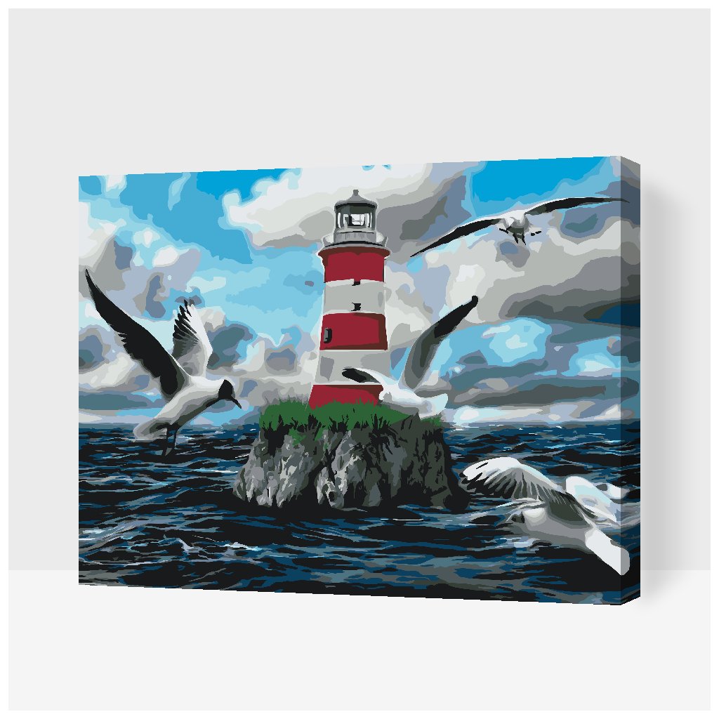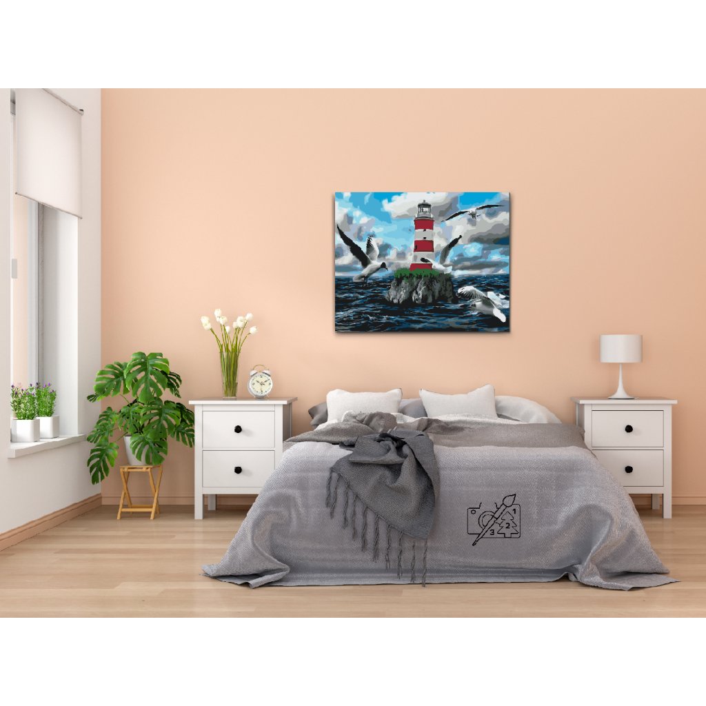 Schilderen op nummer - Wit-rode vuurtoren en meeuwen