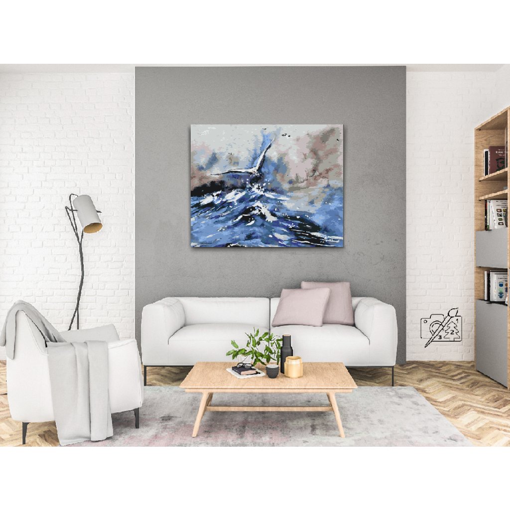 Schilderen op nummer - Zeemeeuw vliegt over de zee