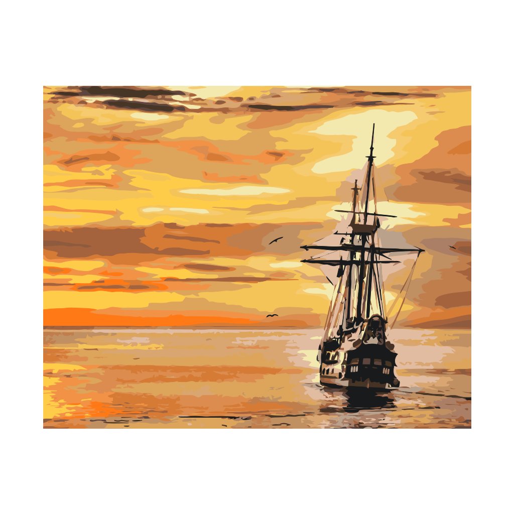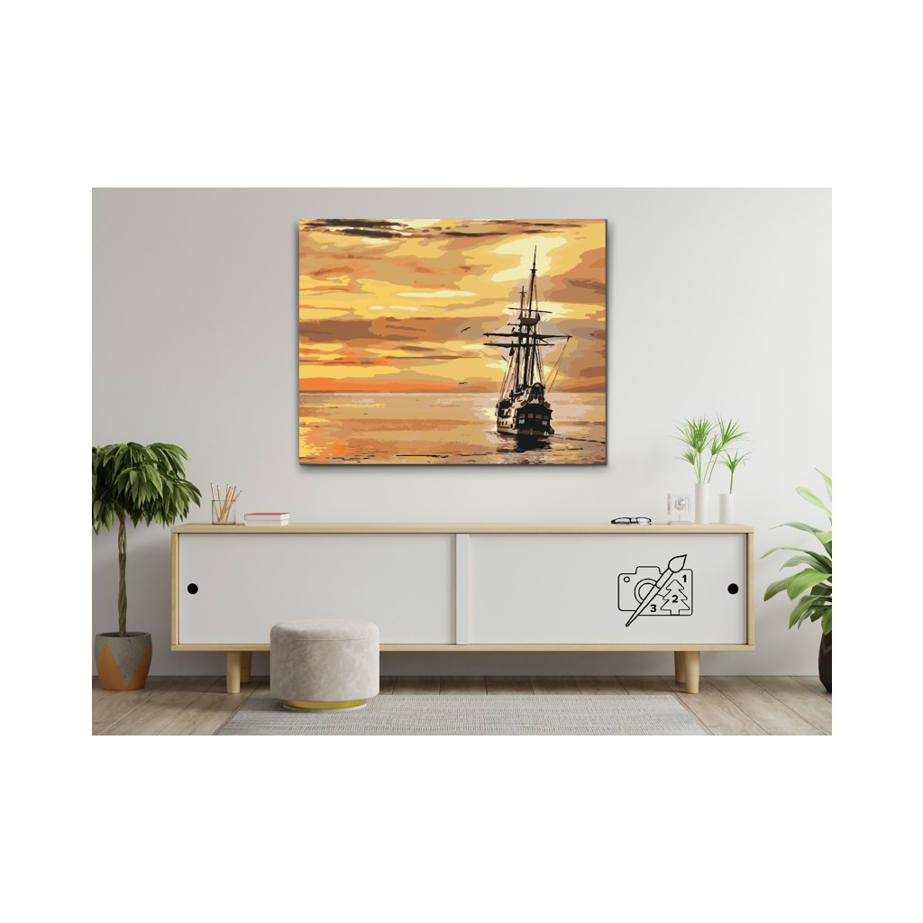 Schilderen op nummer - Zeilboot bij zonsondergang