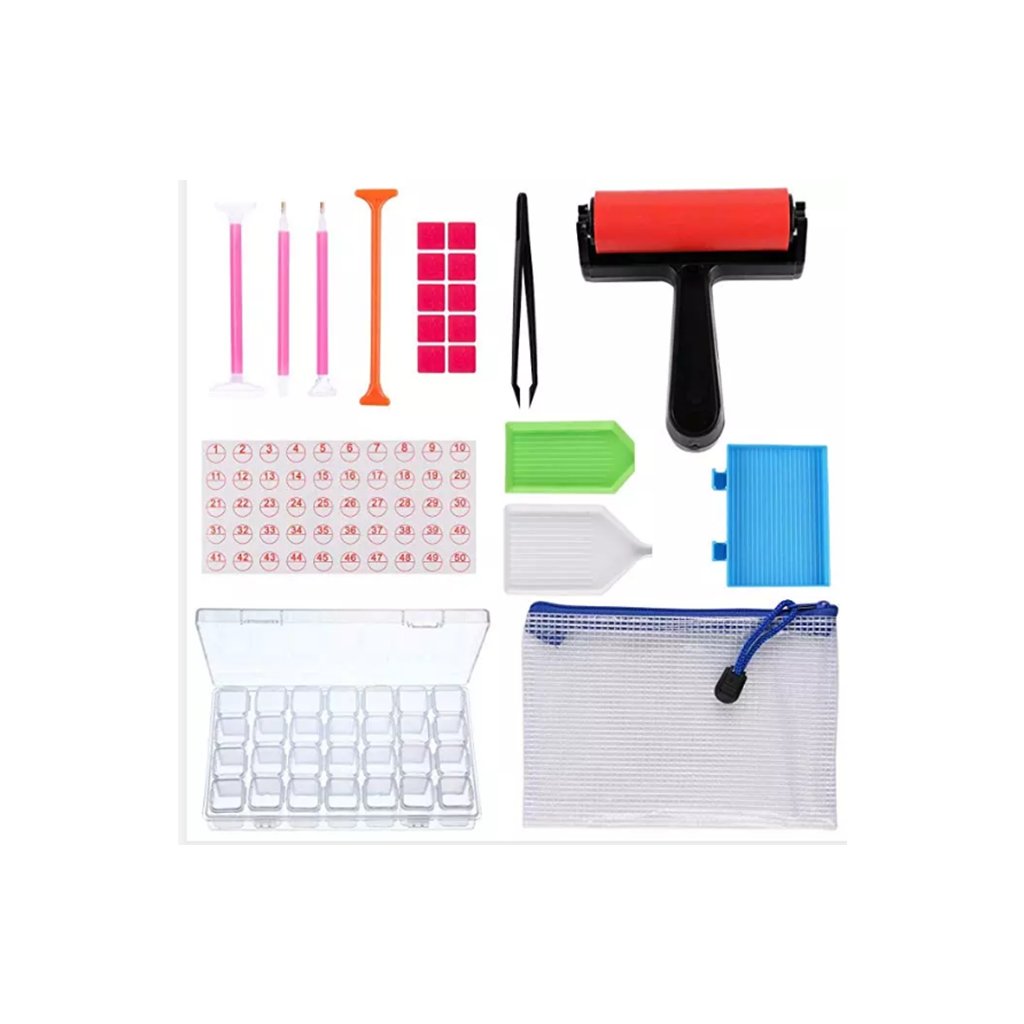 Een uitgebreide set gereedschappen die alles bevat wat een echte liefhebber van diamantschilderijen moet hebben.